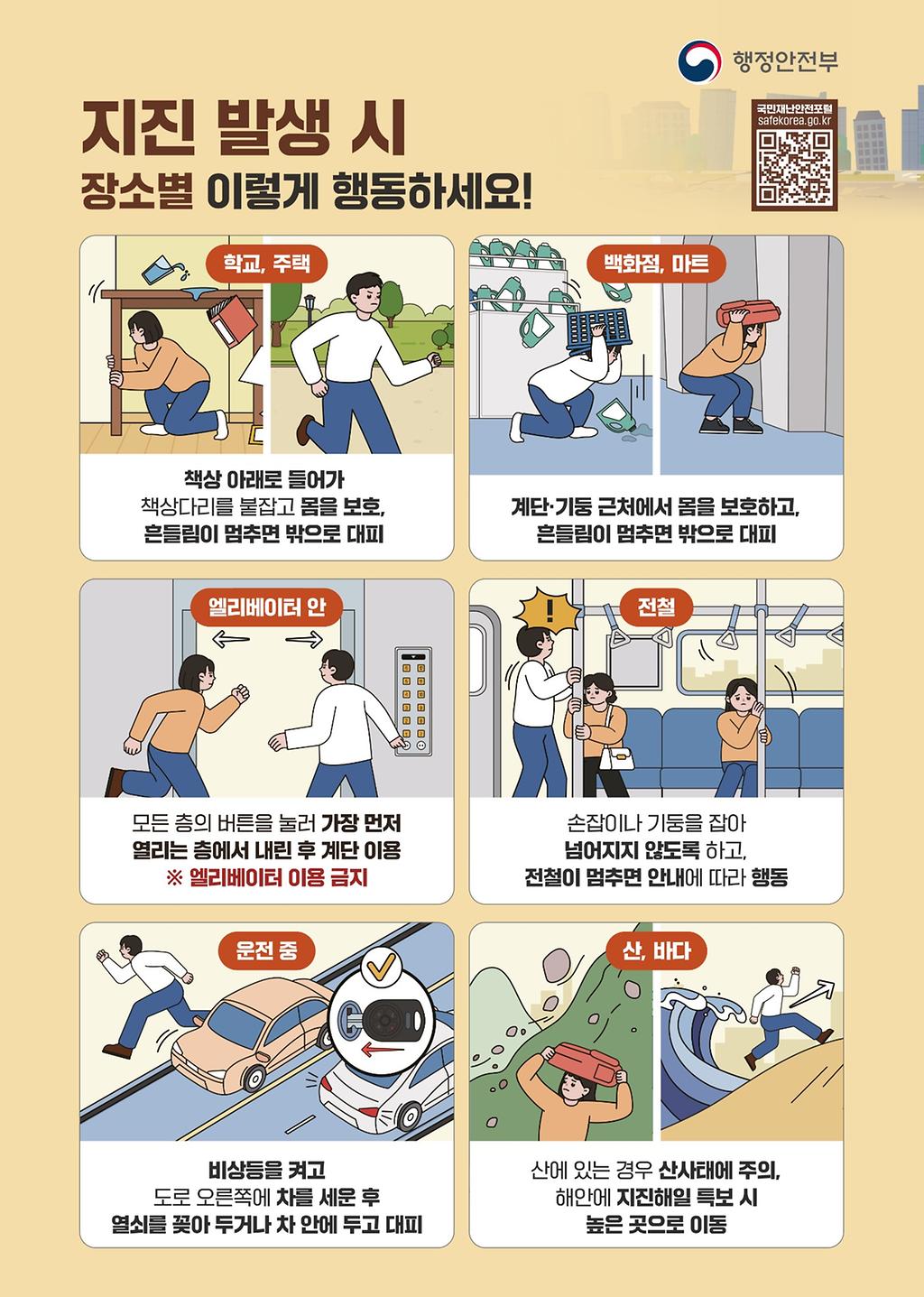 지진 발생 시 장소별 이렇게 행동하세요!