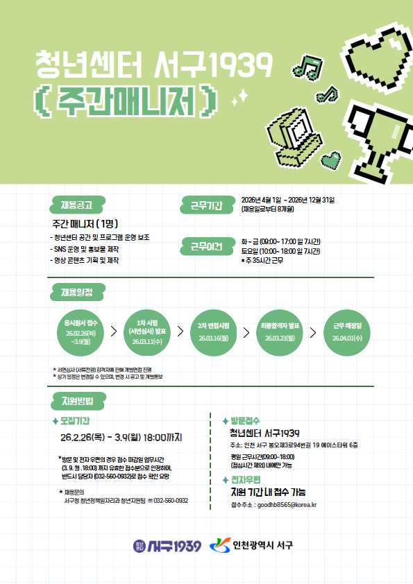 청년센터 서구1939 주간매니저 모집 안내
