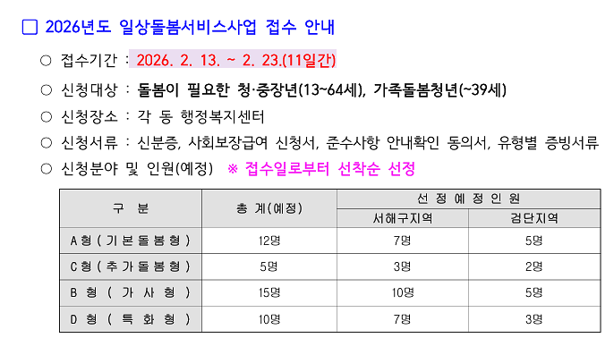 2026 일상돌봄서비스사업 이용자 신규 모집 안내