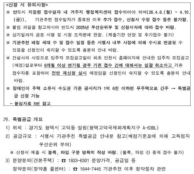 (민간분양)장애인특별공급 기관추천대상자 안내(고덕신도시 아테라)