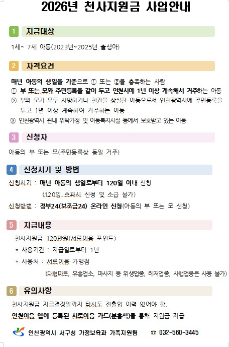 2026년 천사지원금 신청 안내