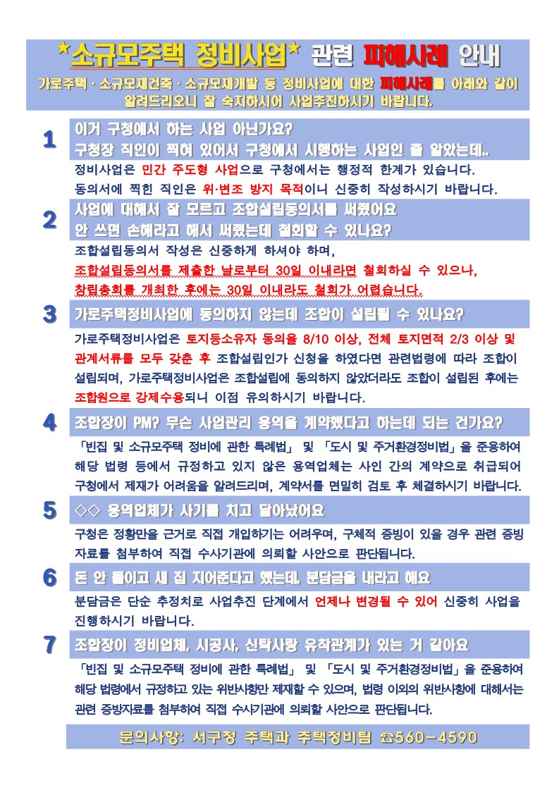 가로주택정비사업 유의사항 알림(동의서 작성 시 신중하게 결정하세요)