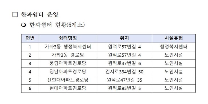 가좌3동 한파쉼터 및 제설함 위치 안내