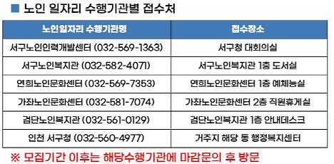 ○ 접 수 처 : 노인일자리 수행기관 5개소(62개 일자리 사업)