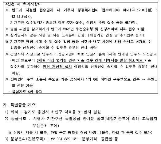 (민간분양)장애인특별공급 기관추천 대상자 안내(용인 푸르지오 클루센트)