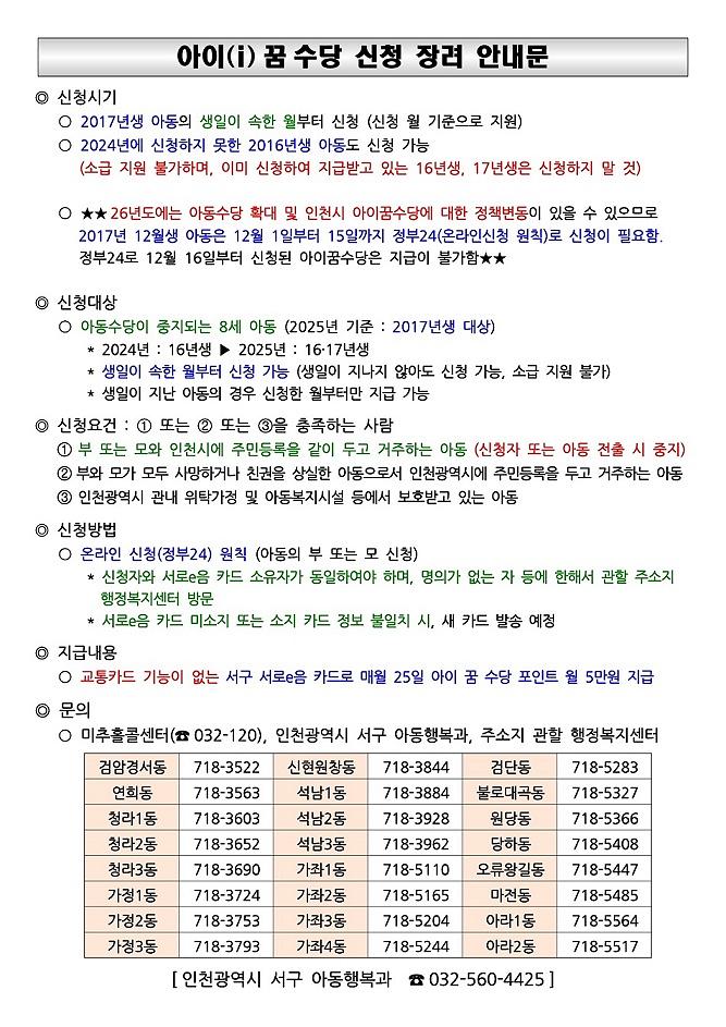 아이(i)꿈 수당 신청 안내(2016,2017년생 대상)