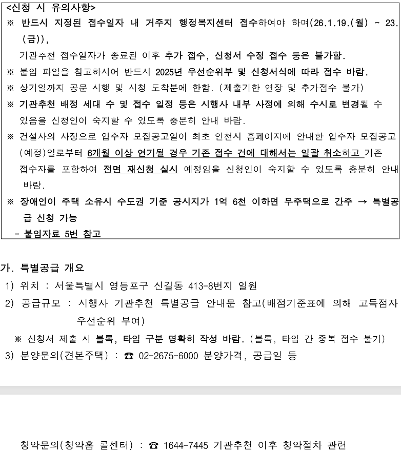 (민간분양) 장애인특별공급 기관추천 안내(더샵 신길센트럴시티)