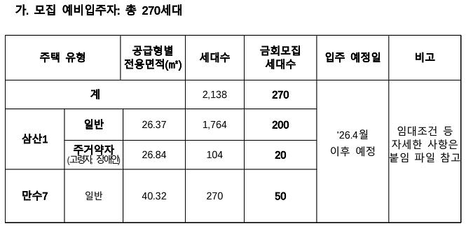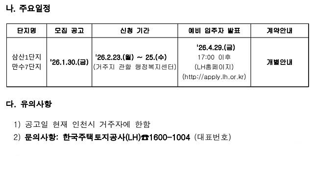 LH영구임대주택 예비입주자 모집 (인천삼산1, 인천만수7)