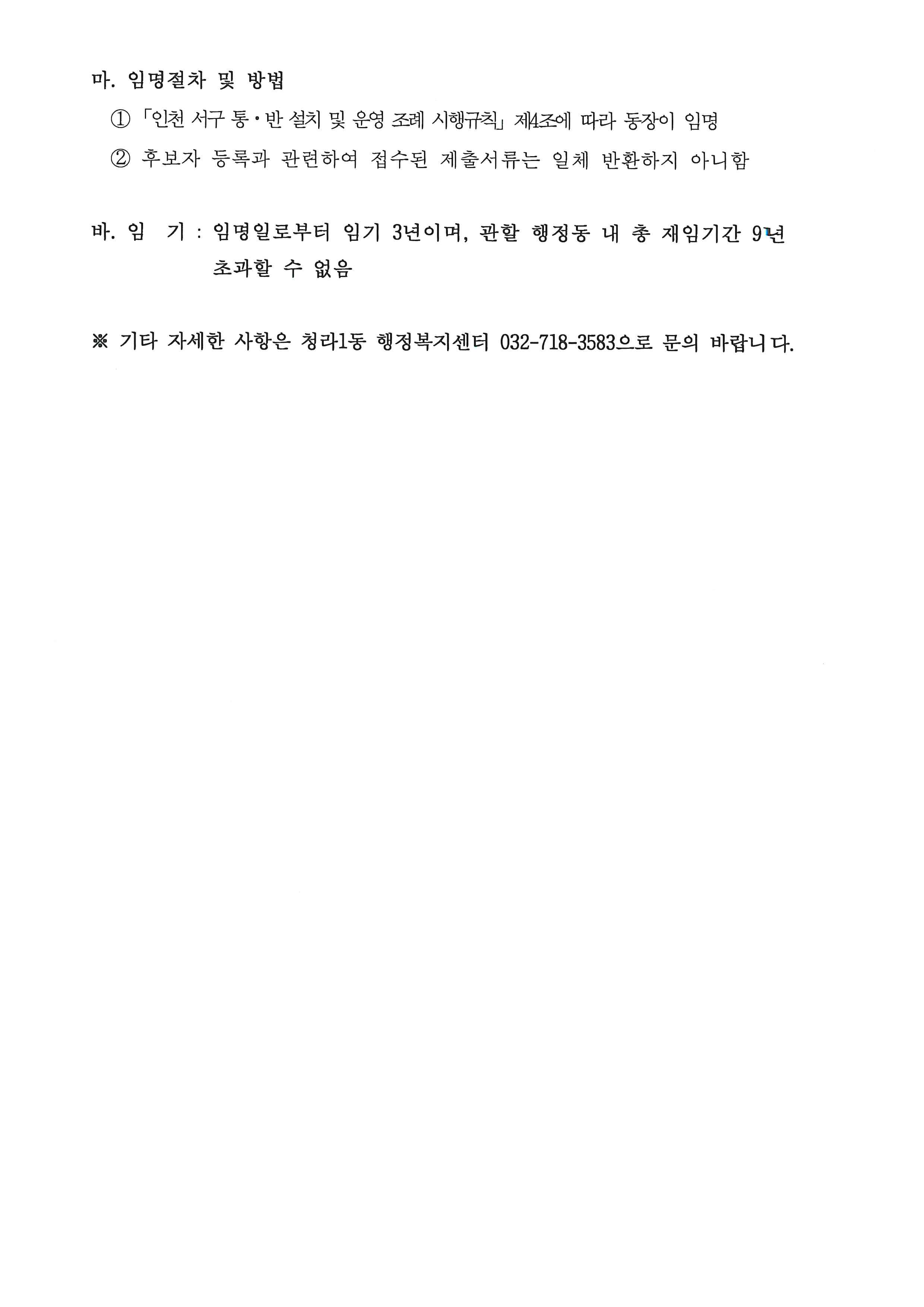 청라1동 통장 공개모집 재공고(제21통)