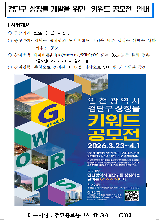 검단구 상징물 개발을 위한‘키워드 공모전’안내
