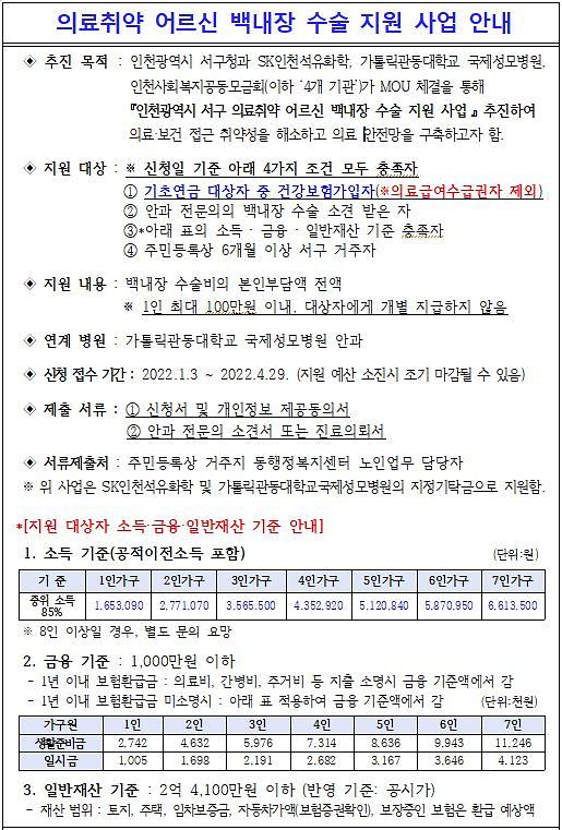 의료취약 어르신 백내장 수술 지원 사업 신청 안내