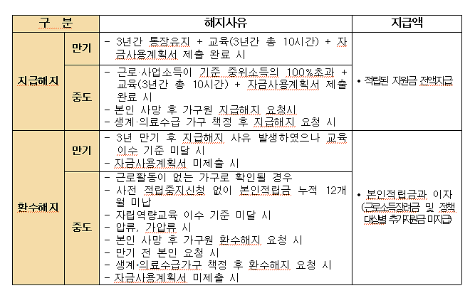- 적립중지를 미신청한 상태에서 본인적립금 누적 12개월 미납 시 본인적립금만 지급하고 환수해지되므로, 반드시 사전 신청해주시기 바랍니다.