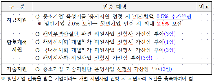 □ 2026년 청년기업 인증 혜택
