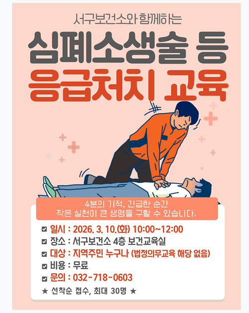 ○ 서구보건소에서 구민을 대상으로 심폐소생술 등 응급처치 교육을 시행합니다.