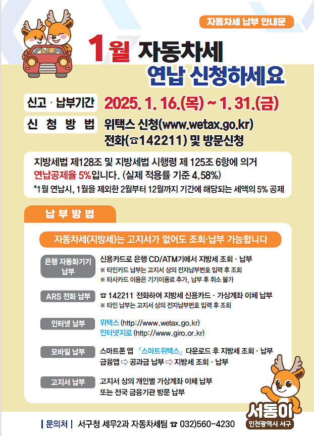 ※ 문의처 : 세무2과 자동차세팀 (☎ 032-560-4230)