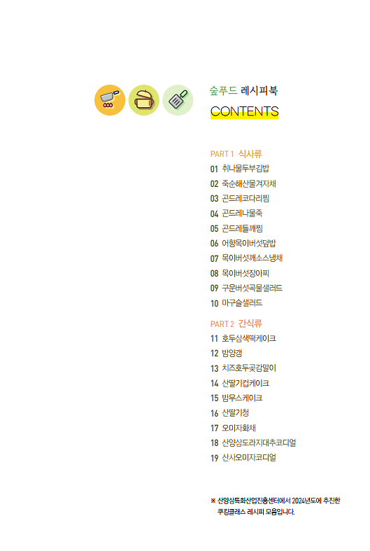 한국임업진흥원에서 제작한 '건강한 먹거리 숲푸드 레시피북' 입니다.