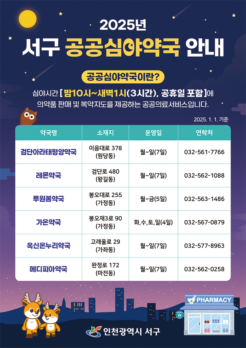 2025년 서구 공공심야약국 운영 안내