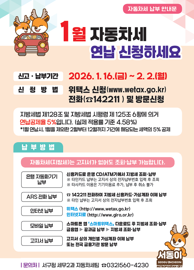※ 문의처 : 세무2과 자동차세팀 (☎ 032-560-4230)