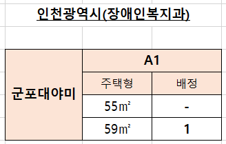 ❍ 인천시 장애인특별공급내역 (블록, 타입 간 중복 신청 불가)
