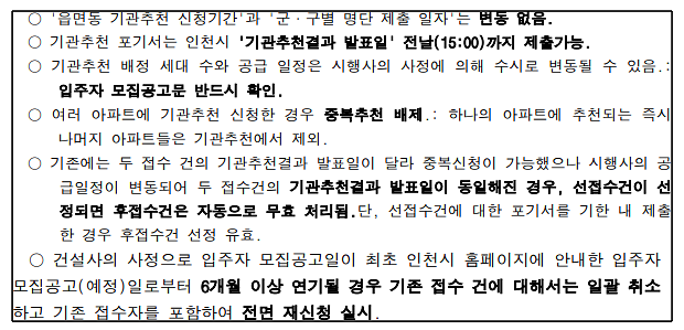 신청하신 분들께서는 추후 착오가 없도록 변경된 시행사의 기관추천 특별공급 안내문에서 공급 일정 등을