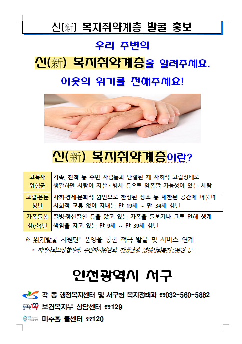 우리 주변의 신(新) 복지취약계층 발굴 홍보관련입니다.