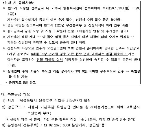 (민간분양)장애인특별공급 기관추천 안내(더샵 신길센트럴시티)