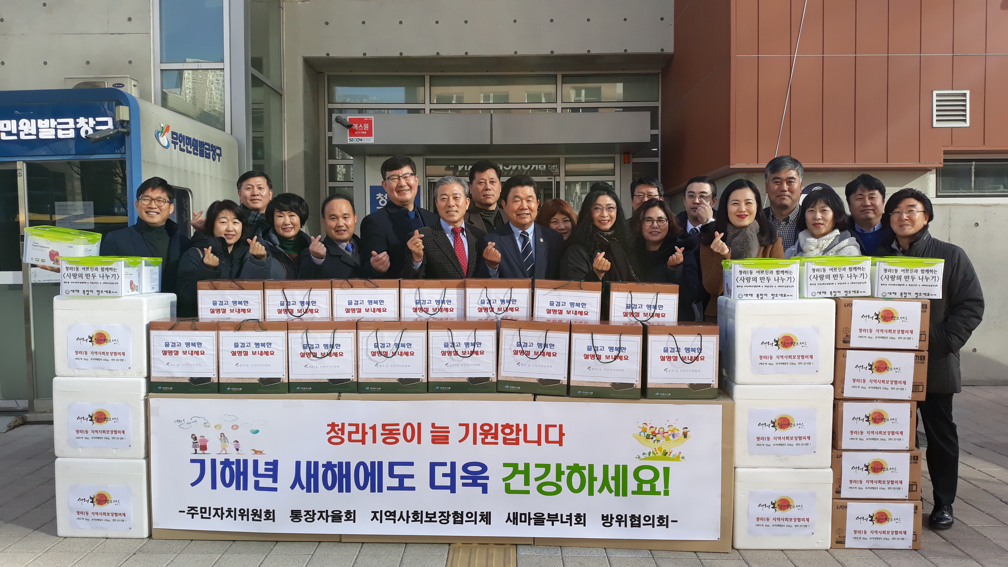 1월 24일 청라1동 주민자치위원회(위원장 윤한석)와 지역사회보장협의체(민간공동위원장 정관성)에서는 다가오는 설을 맞이하여 관내 어르신 및 소외계층을 위한 따듯한 나눔행사를 개최하였다.