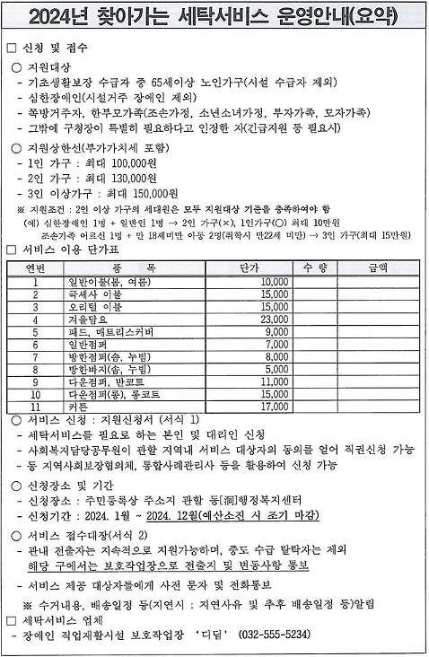 2024년 찾아가는 세탁서비스 신청 안내