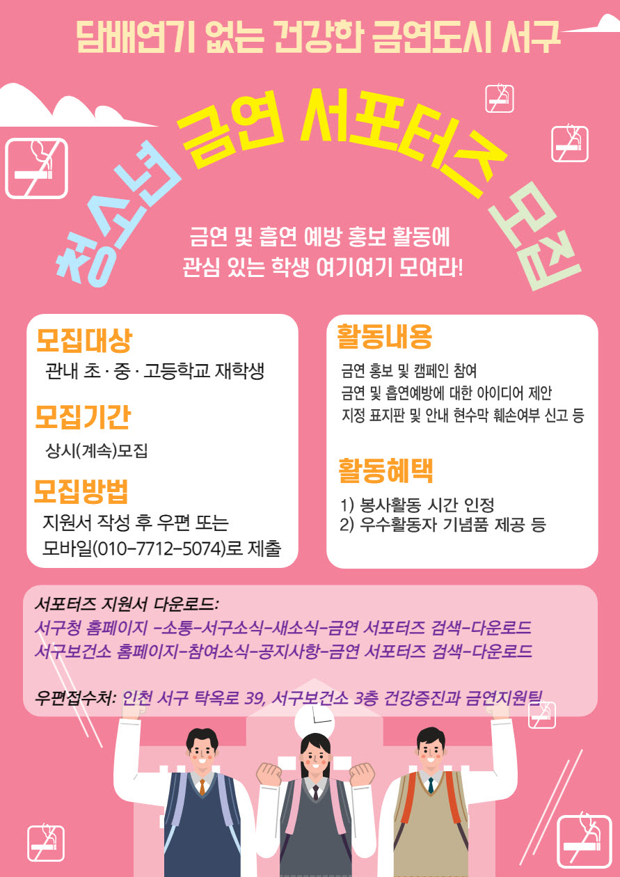 청소년 흡연예방 추진사업 관련『금연 서포터즈 모집』