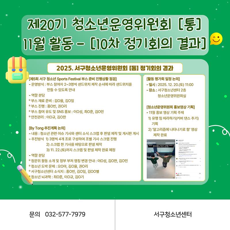 [서구청소년센터] 청소년운영위원회 '통' 11월 소식지