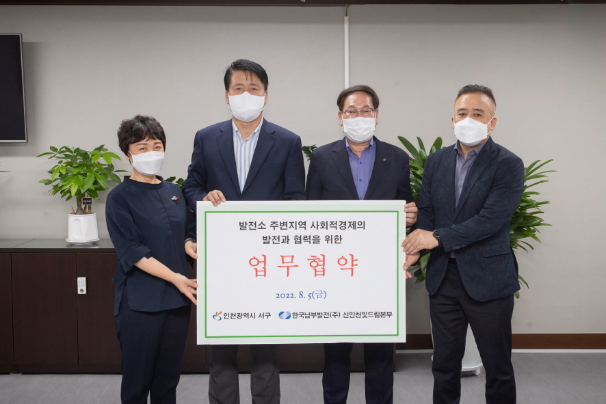 서구는 5일 강범석 서구청장과 송기인 본부장이 참석한 가운데 발전소 주변지역 사회적경제 발전과 협력을 위한 업무협약을 체결했다.