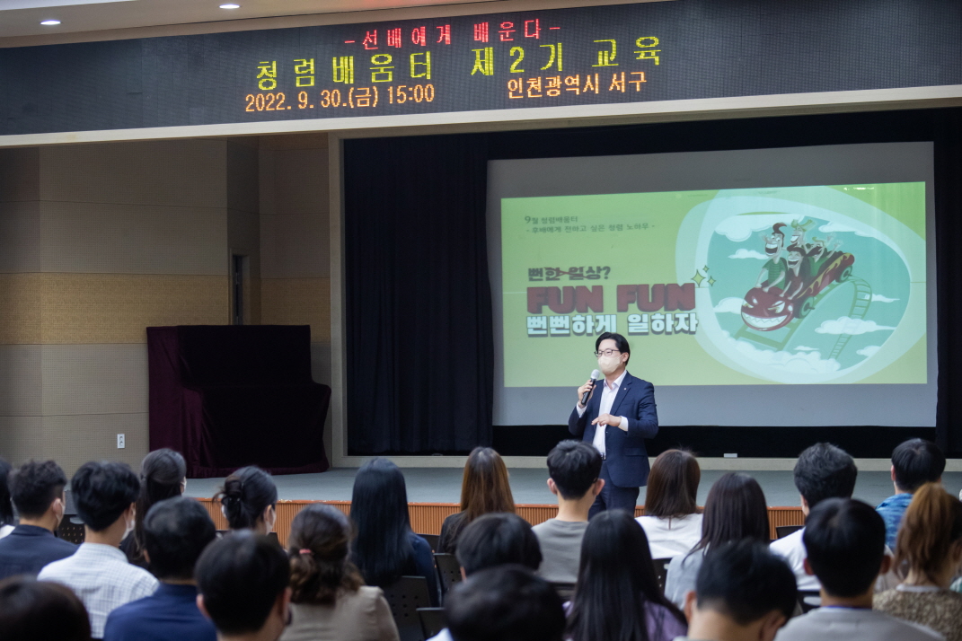 인천 서구(구청장 강범석)는 선배 공직자가 공직에 입문한 후배에게 ‘청렴마인드’를 전파해 청렴한 조직문화를 만들기 위한 ‘청렴배움터’를 지난달 30일 진행했다고 밝혔다.