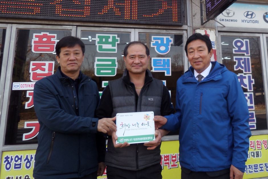 인천 서구 석남1동 지역사회보장협의체(공동위원장 박충기, 김종현)는 지난 10일 지역의 어려운 이웃들을 돕기 위하여 보장협의체를 통해 정기적으로 나눔을 실천하고 있는 업체 4개소에 「희망나눔이웃」석남1동-제20호~제23호 인증패를 전달했다.