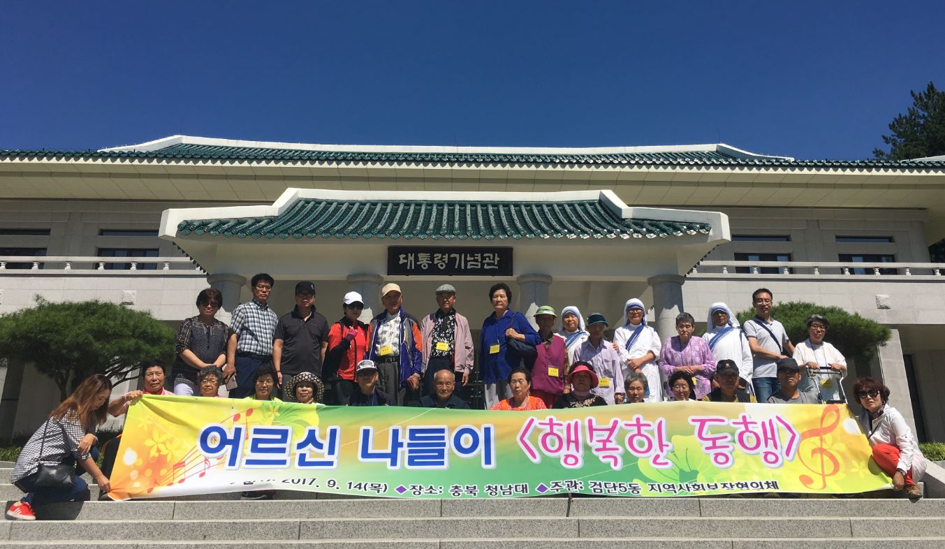 이날 나들이에서는 지역 내 어르신 20여분과 동지역사회보장협의체 위원 10여명이 함께 충북 청주시에 위치한 청남대를 방문해 대통령 휴양시설로 쓰인 본관, 양어장, 기념관 등을 관람하고 점심식사도 대접했다.