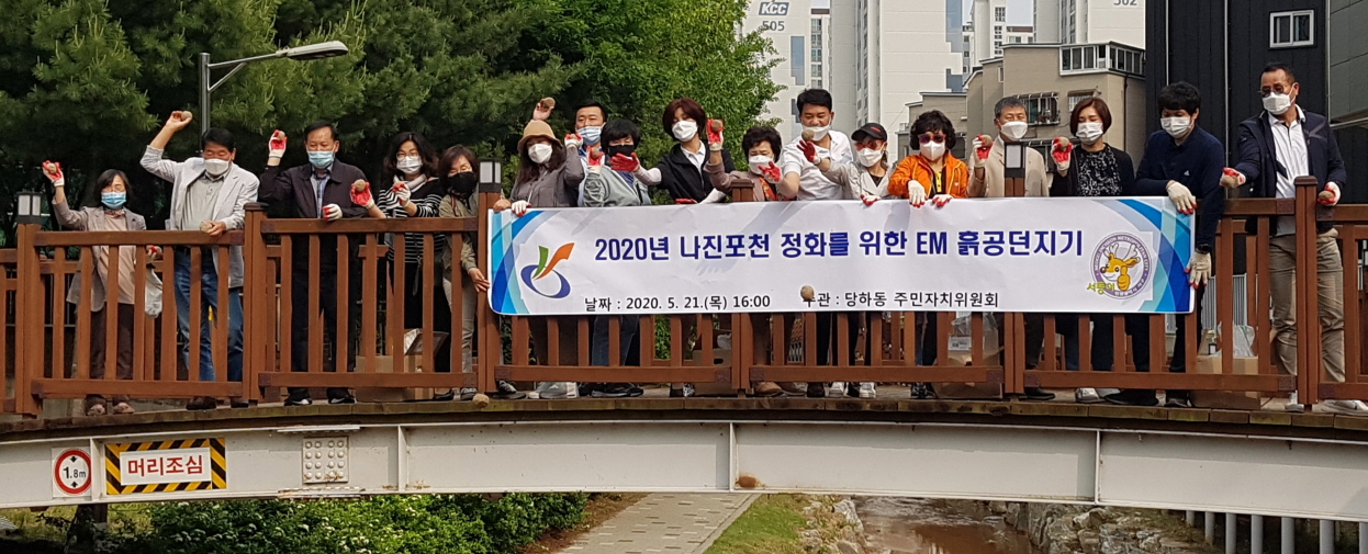 인천 서구 당하동 주민자치위원회(위원장 한규창)는 지난 21일 친환경 생태하천 조성을 위한 하천정화 활동의 일환으로 나진포천 내에 EM흙공 약 1천여 개를 투척하는 ‘나진포천 EM흙공 던지기’ 행사를 진행했다.