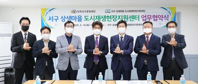 인천서구문화재단은 지난 19일 인천서구 상생마을 도시재생 현장지원센터와 석남동 상생마을 문화적 도시재생을 통한 지역문화진흥 업무협약(MOU)을 체결했다. 업무협약식은 인천서구문화재단과 서구 상생마을 도시재생 현장지원센터, 인천 서구 도시재생경관과 관계자가 참석한 가운데 진행됐다.