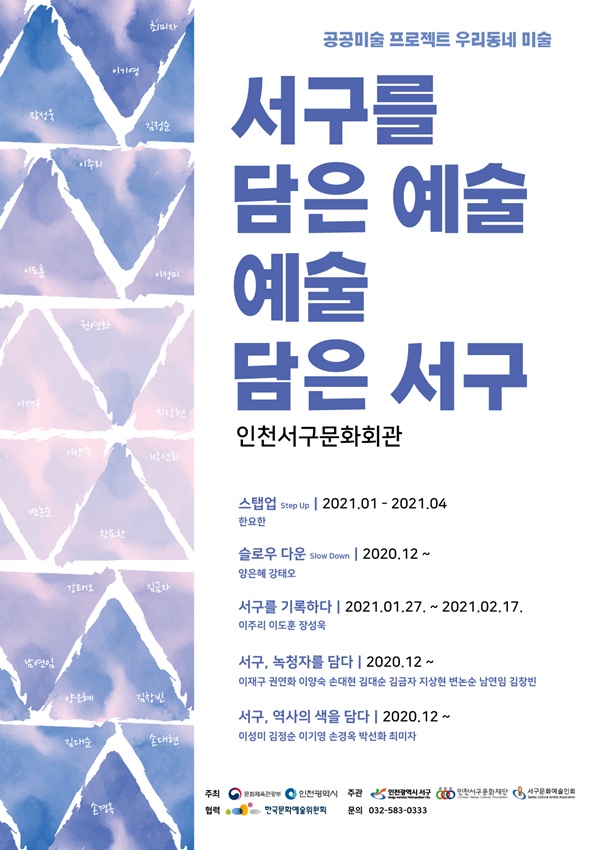 ‘공공미술 프로젝트’는 문화체육관광부와 인천광역시가 주최하고 인천 서구와 서구문화재단이 주관해 지역 예술인 일자리 제공과 주민 문화예술향유 기회 확대를 위해 추진된 사업이다.