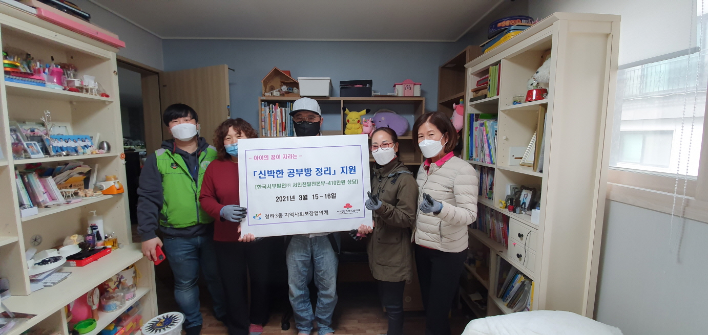 인천 서구 청라3동 지역사회보장협의체(민간위원장 현용호)는 지난 15~16일 이틀간 한국서부발전(주) 서인천발전본부(본부장 황해석)와 함께 저소득 가구를 대상으로 ‘신박한 공부방 지원 및 정리 사업’을 진행했다고 18일 밝혔다.