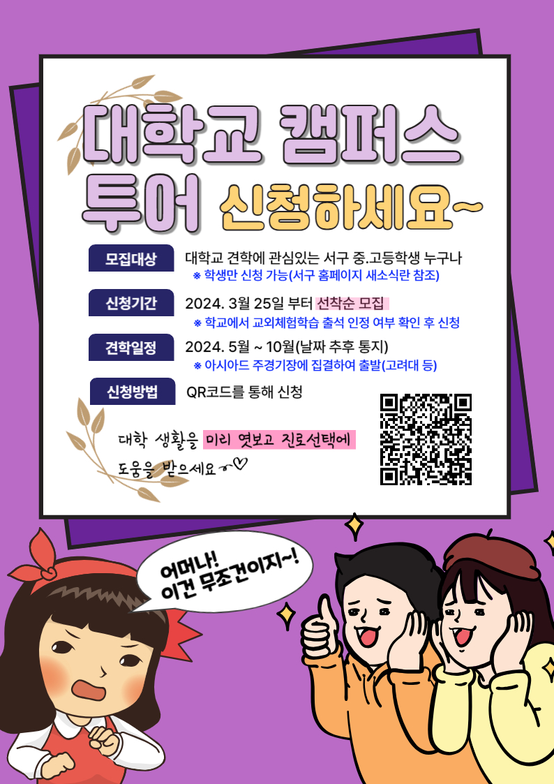 ○ 모집대상 : 대학교 견학에 관심있는 서구 중·고등학생 누구나