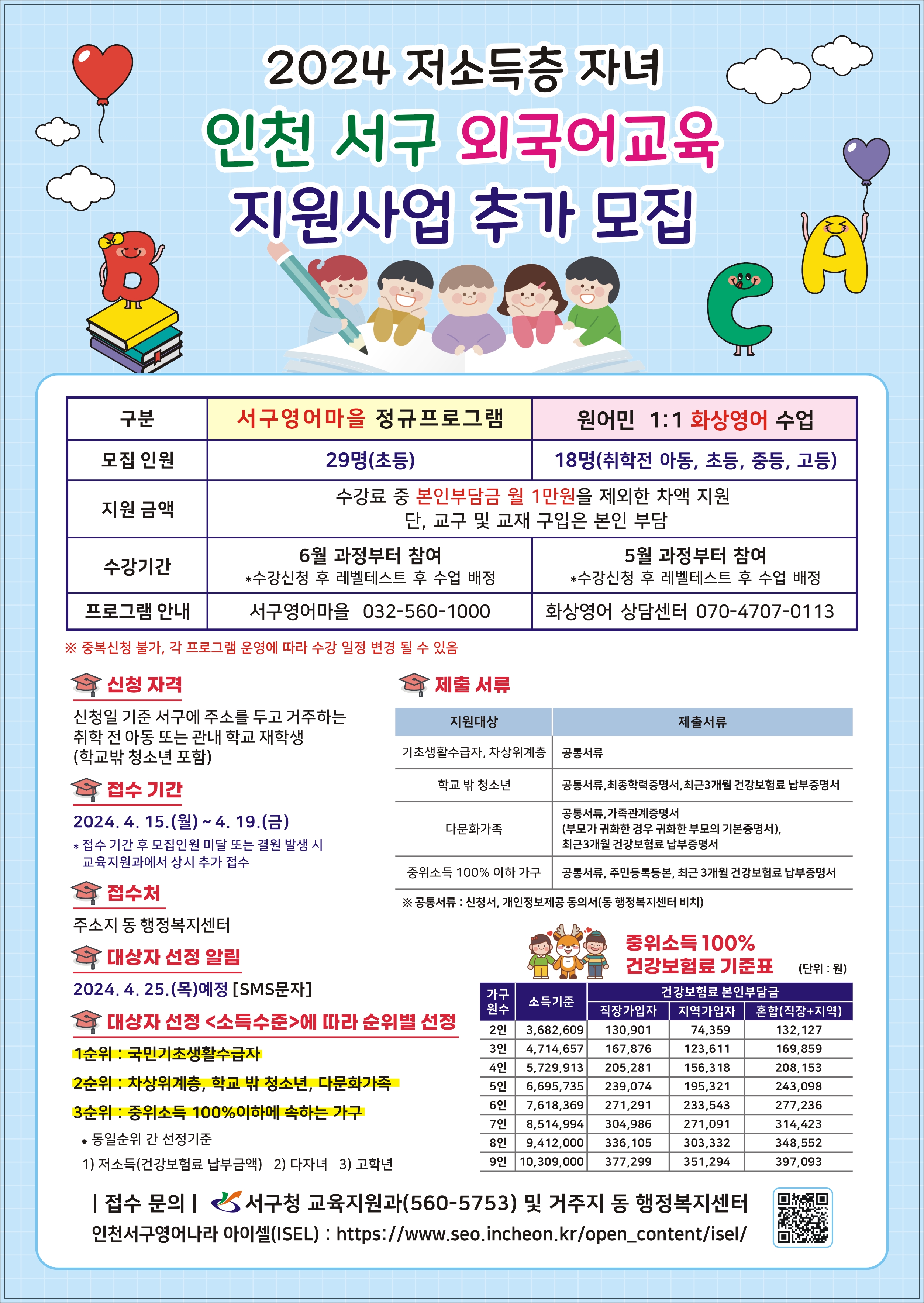 2024년 저소득층자녀 외국어교육 지원사업 수강생 추가 모집을 안내하오니