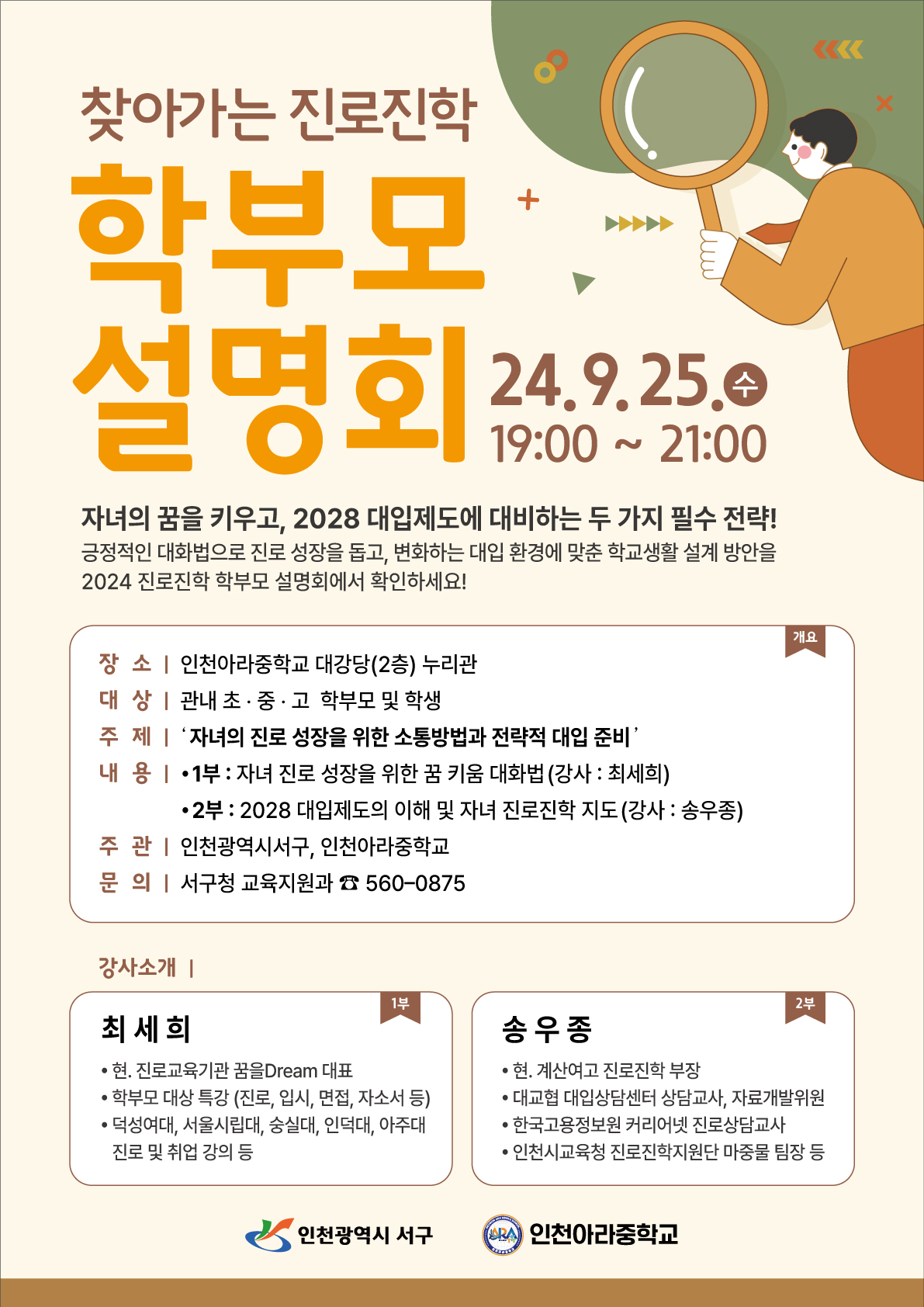 찾아가는 진로진학 학부모 설명회(아라중)개최 안내