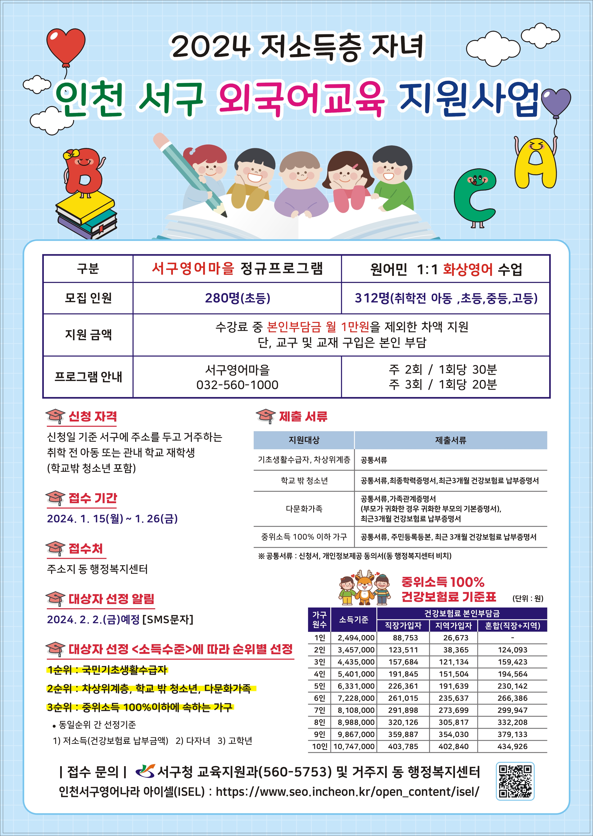 2024년 저소득층자녀 외국어교육 지원사업 수강생 모집을 안내하오니