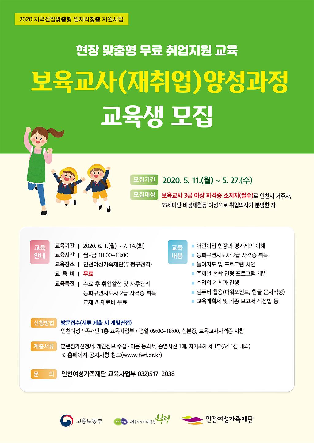 인천여성가족재단 보육교사(재취업) 양성과정 훈련생 모집