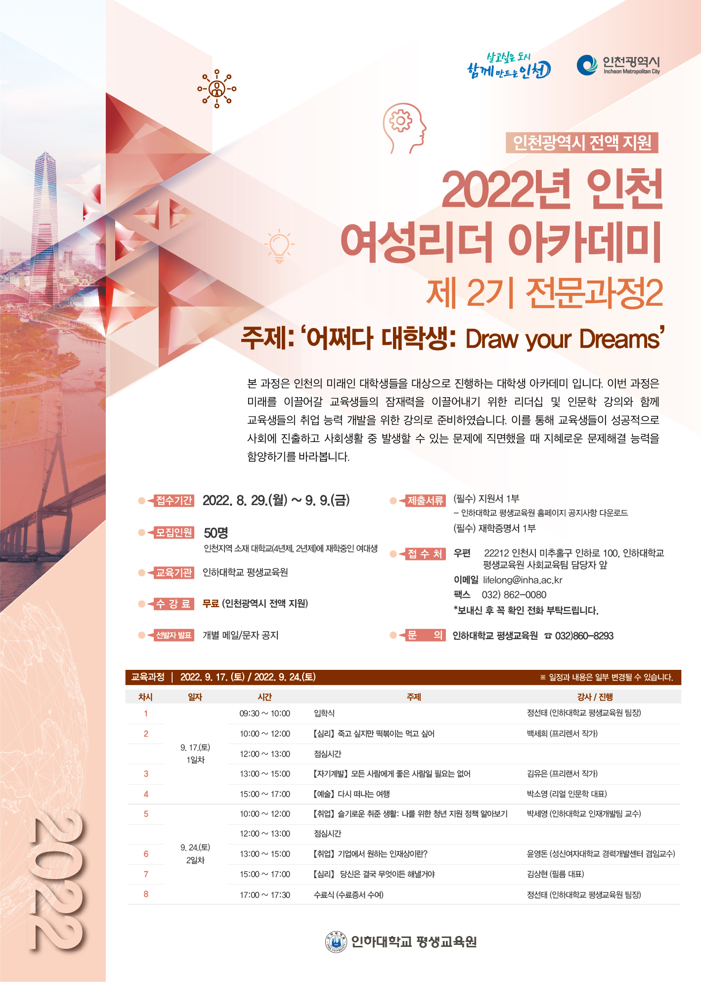 마. 접수방법: 인하대학교 평생교육원 홈페이지에서 지원서 다운로드 후 이메일