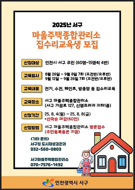 ▶ 교육장소 : 인천광역시 서구 가정로127(가좌동), 지하1층 마을주택종합관리소