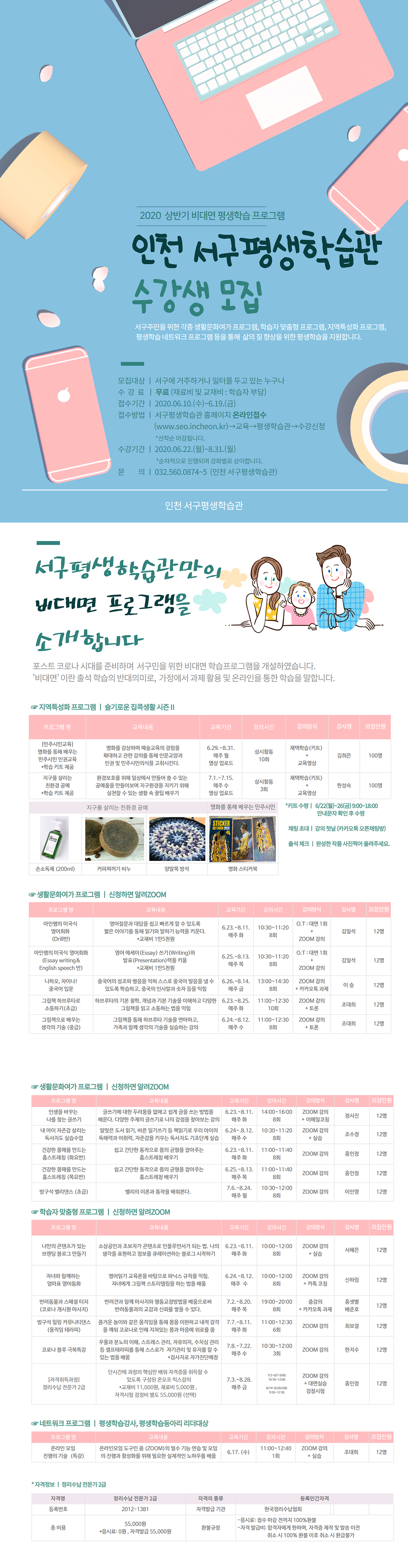 모집기간 : 2020. 6. 10.(수) 09:00 ~ 강의시작 3일전까지 (선착순)