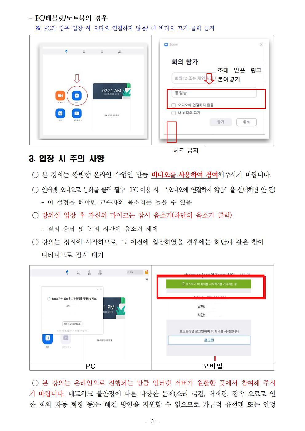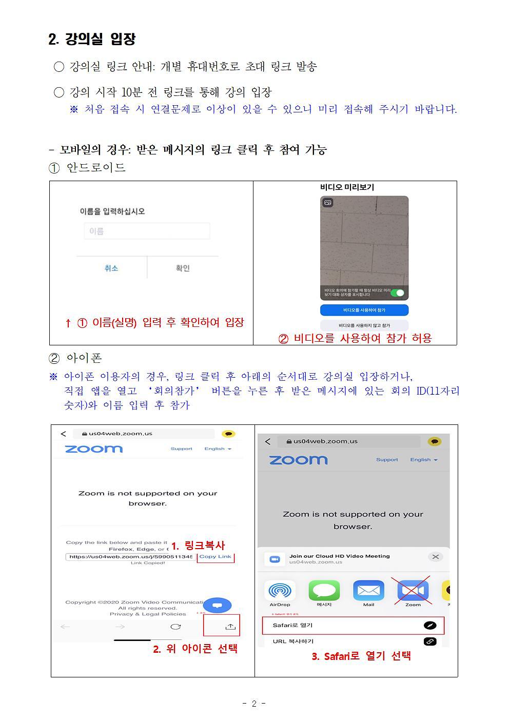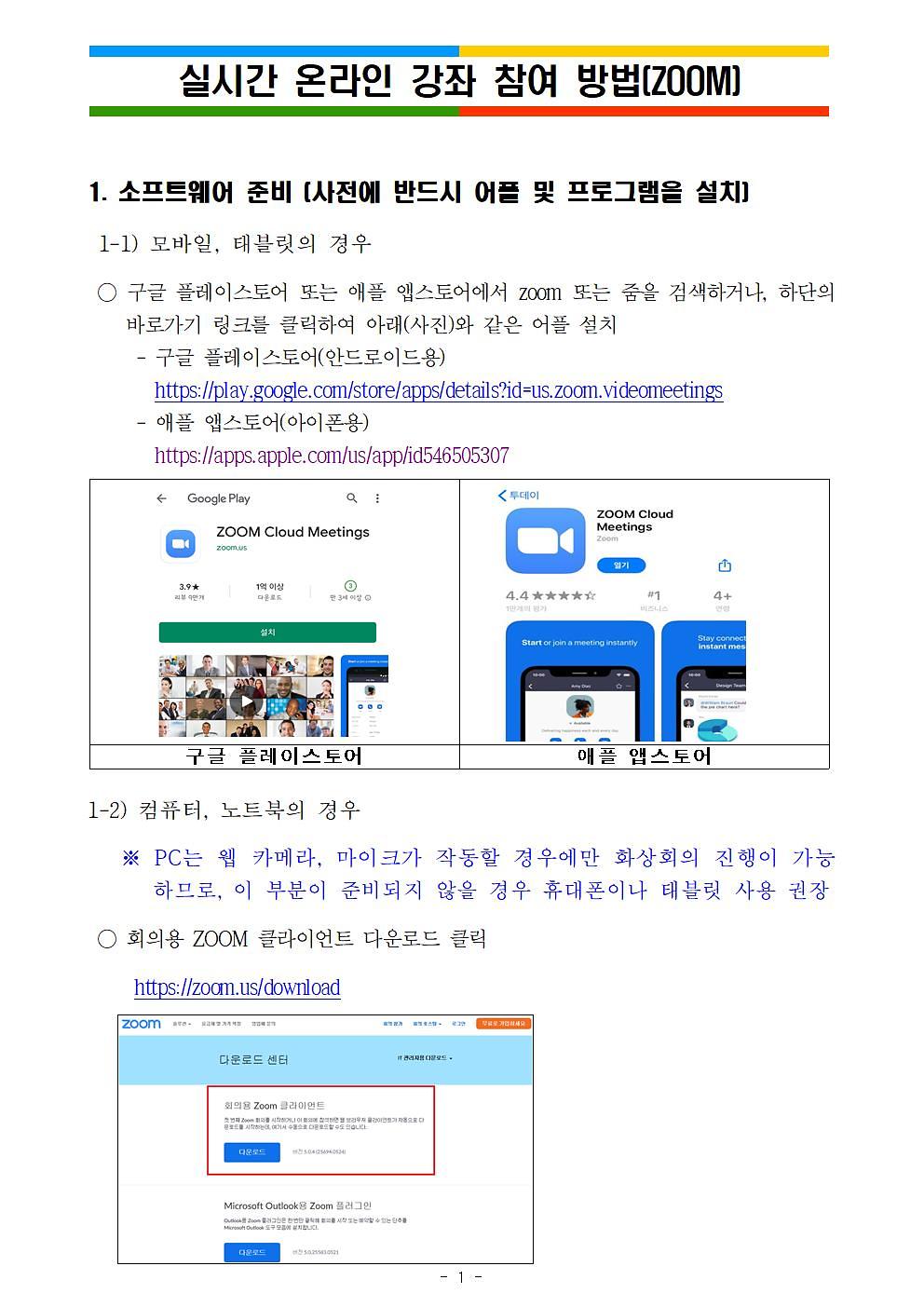 비대면 강의 줌(ZOOM)강의 접속 방법 안내