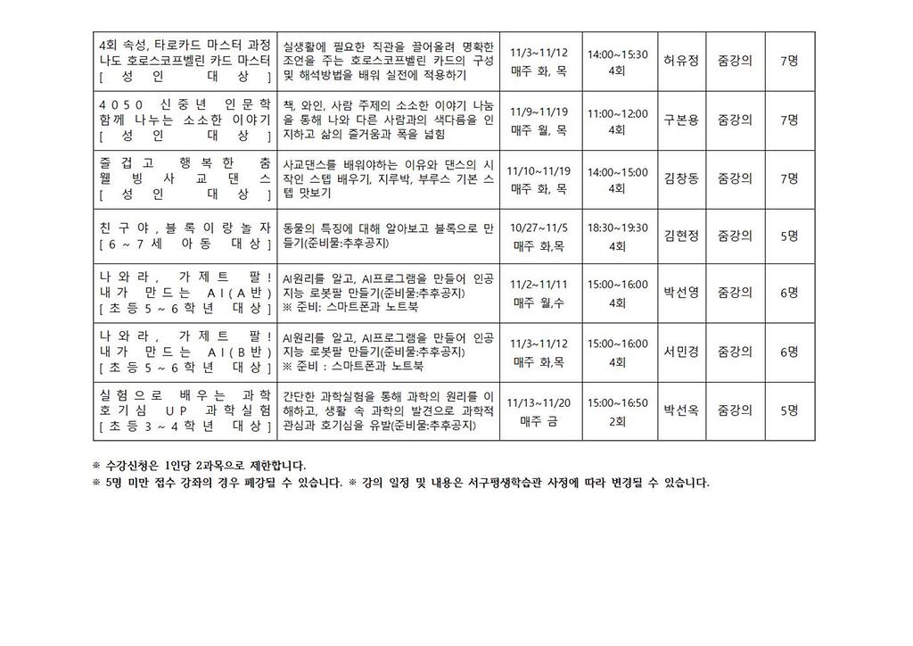 * 학습관 사정에 따라 일정이나 내용이 변경될 수 있습니다.