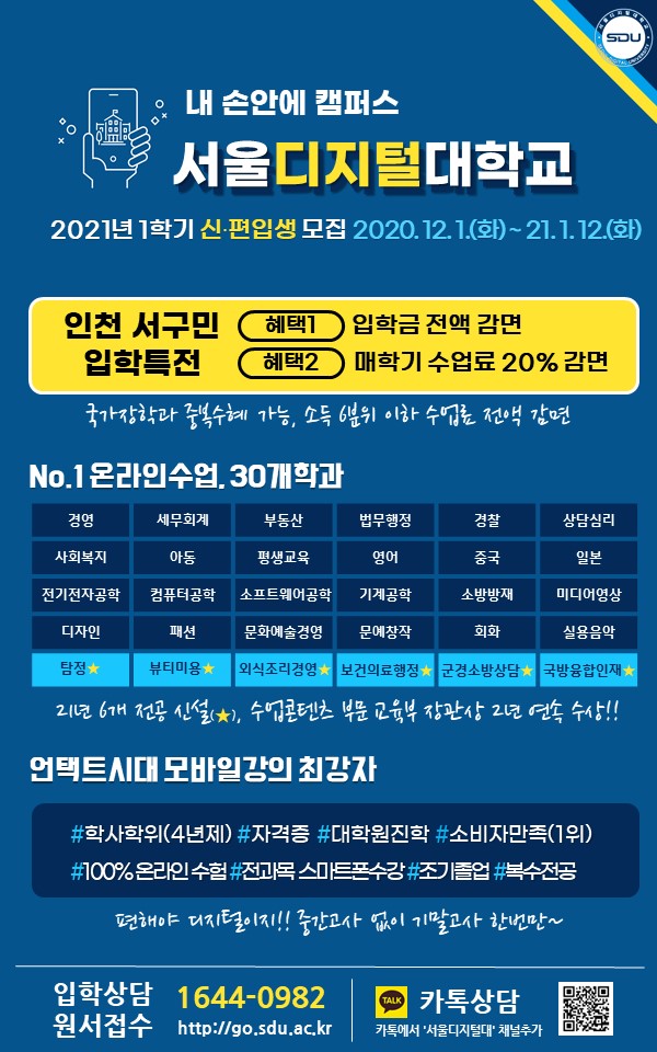 [서울디지털대학교 2021년 1학기 신∙편입생 모집 안내]
