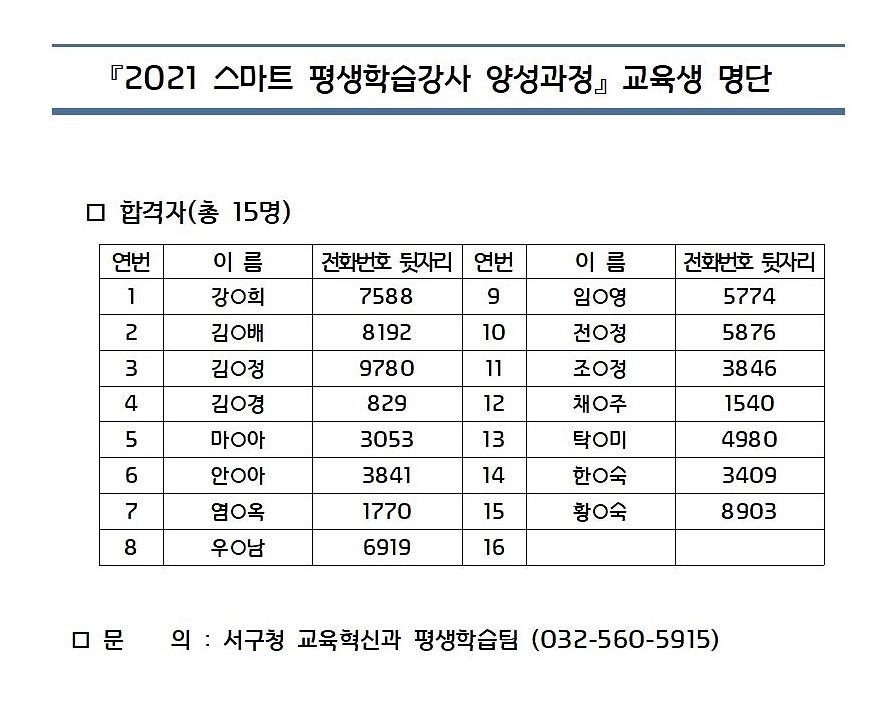 【2021 스마트 평생학습강사 양성과정 교육생 선발 결과】